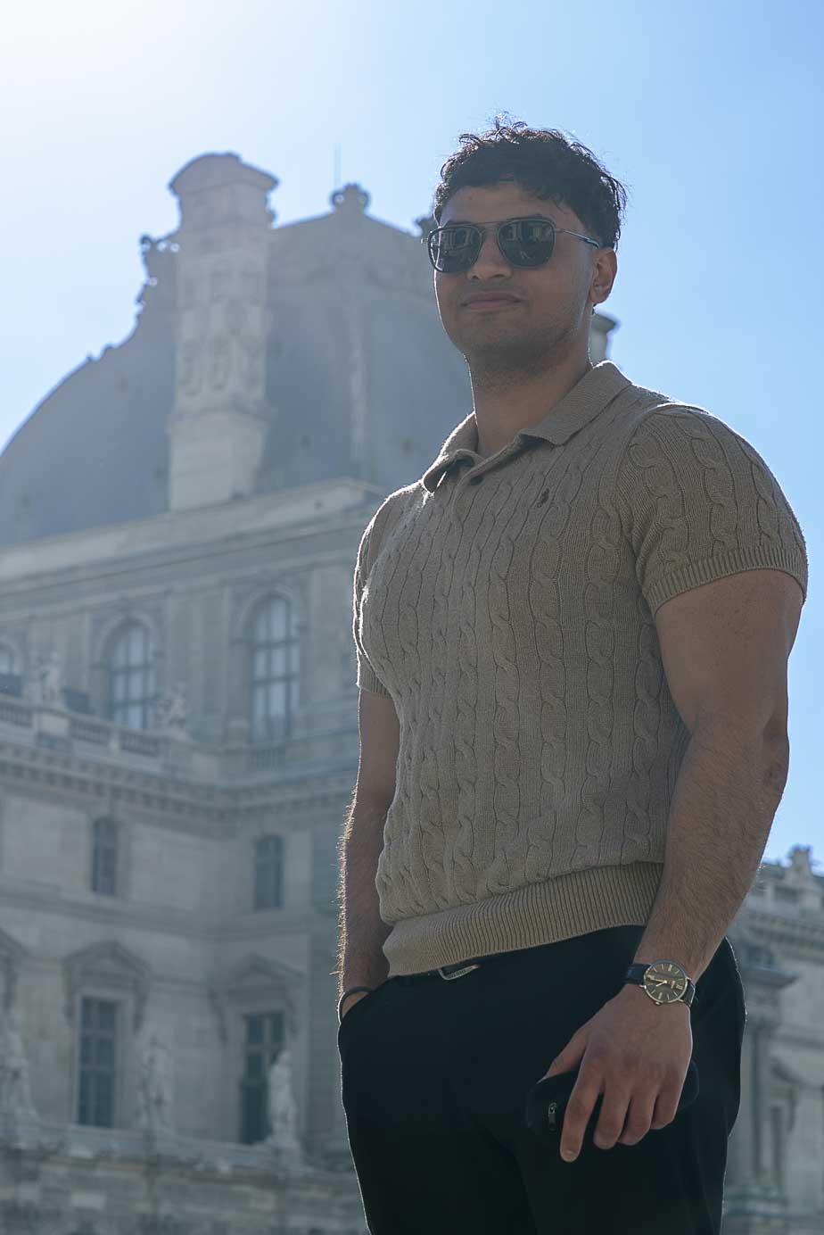 Pour un shooting rapide de 30 minutes, nous vous proposons de vous concentrer sur la Pyramide du Louvre et la Cour Napoléon. Ces deux lieux offrent des vues spectaculaires avec un éclairage naturel magnifique, idéal pour des portraits iconiques.